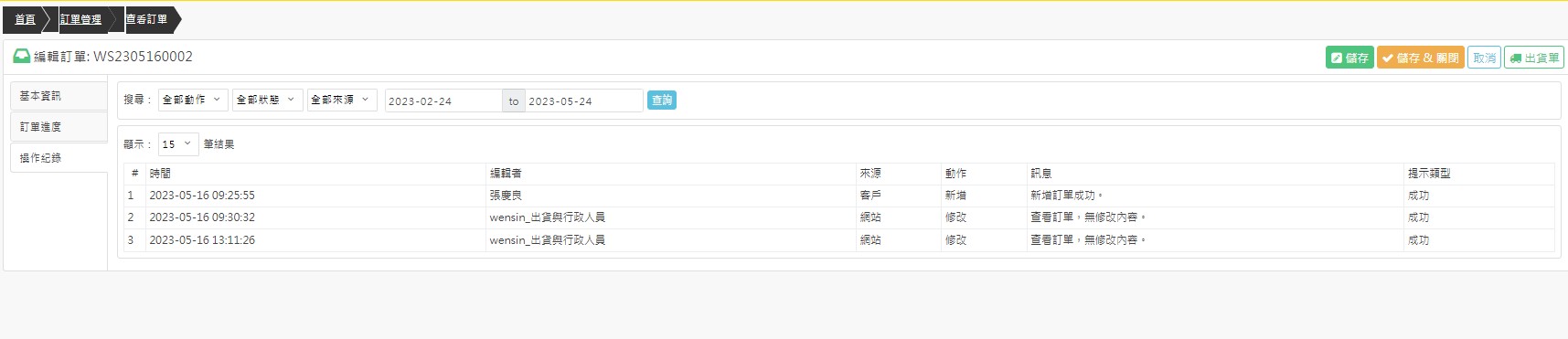 (1)、可篩選條件進行搜尋查看此筆訂單的相關紀錄