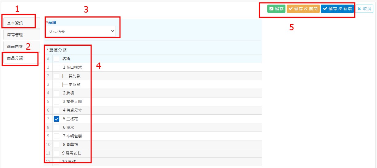 圖1 寫完基本資訊,要到商品分類填完按儲存,才可以開始新增庫存,如下圖順序